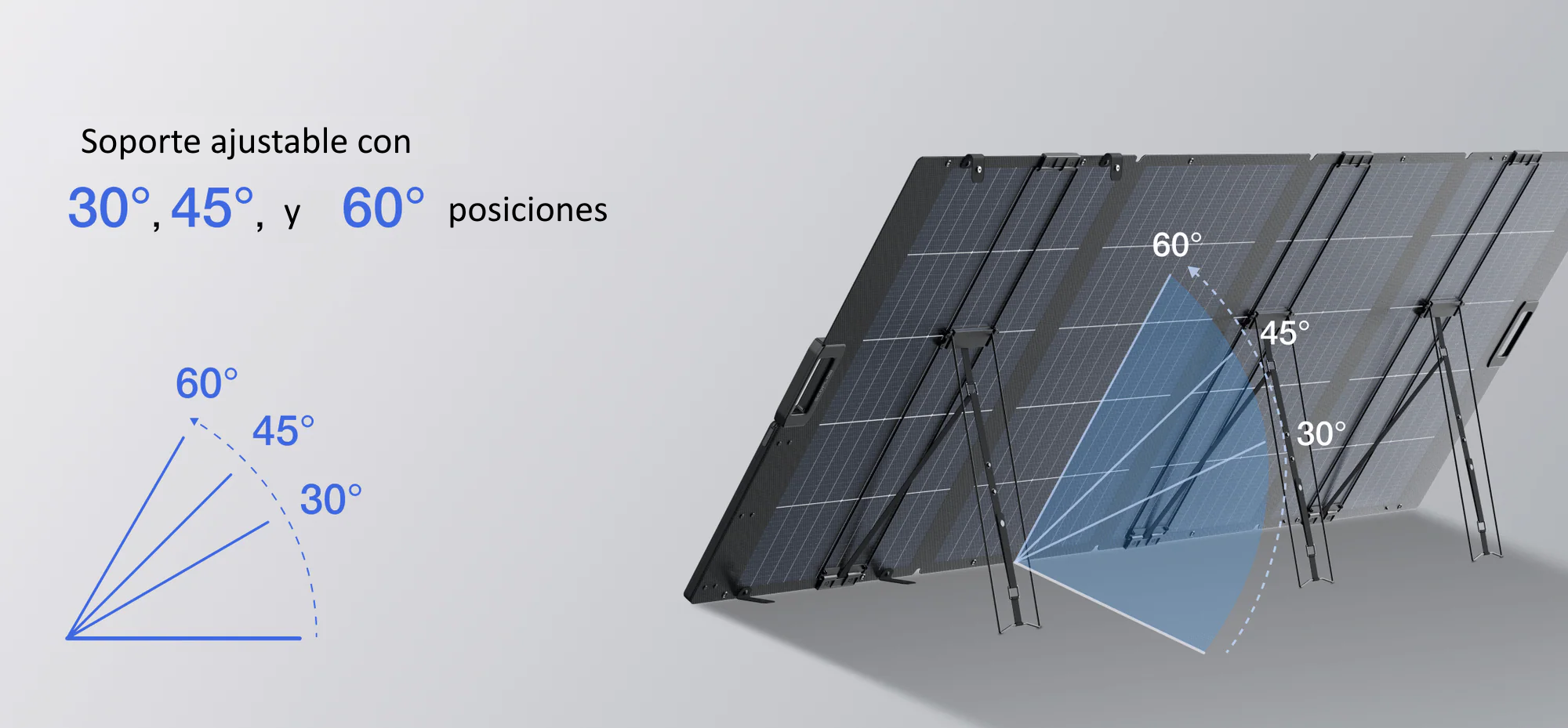 El soporte plegable integrado proporciona un diseño compacto y práctico, con ángulos ajustables de 30°, 45° y 60°, lo que lo hace ideal para usar en la mayoría de las ubicaciones de alta latitud.