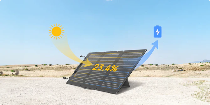 Con una alta tasa de conversión del 23,4 %, la estación de alimentación portátil RIVER 2 puede cargarse en su totalidad en tan solo 5 horas en los momentos del día en los que la luz solar es máxima. Esto significa que puedes cargar RIVER 2 en cualquier lugar y seguir suministrando electricidad a tus electrodomésticos esenciales.