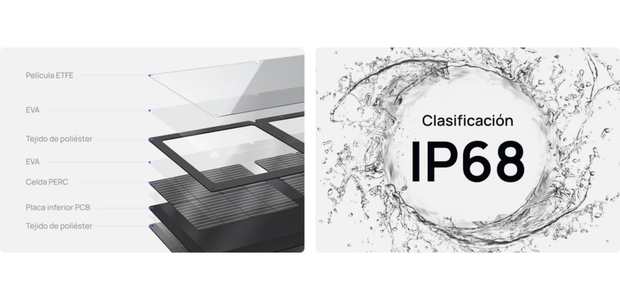Soporta todas las condiciones climáticas, diseñado para soportar su estilo de vida aventurero, este panel sin costuras es sumergible hasta un metro durante 30 minutos con el IP67 y una película de ETFE protege contra los rayos ultravioleta.